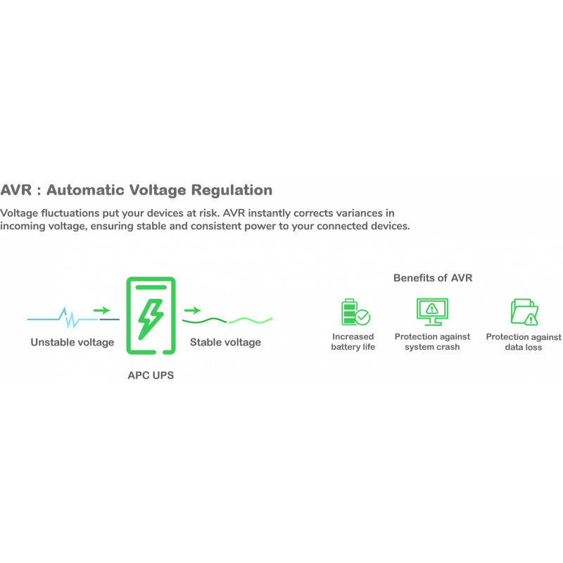 As soon as the power fails, an APC Smart-UPS immediately supplies emergency power to all connected equipment. Because an APC UPS does this automatically, you prevent unwanted failure of, for example, a PC, server or switch. With the APC PowerChute Network Shutdown software, you can even have critical IT hardware shut down automatically and in a controlled manner when the UPS battery is almost empty. This prevents data loss, downtime and physical damage to hardware.