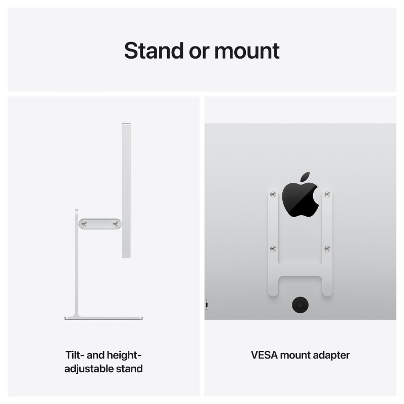 "Apple Studio Display XDR - Standard glass - Tilt- and height-adjustable stand. Display diagonal: 68.6 cm (27""), Display resolution: 5120 x 2880 pixels, HD type: 5K Ultra HD, Display technology: LED, Native aspect ratio: 16:9. Built-in speaker(s). Built-in USB hub. Height adjustment. Product colour: Silver"\n"Pixel sharpener."