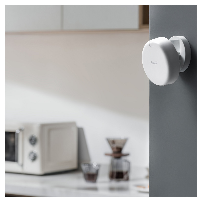 "Aqara PS-S02D. Measuring parameters: Light, Motion, Connectivity technology: Wired & Wireless, Wireless technology: Wi-Fi. Power source: USB. Width: 75 mm, Depth: 86 mm, Height: 63 mm. Quantity per pack: 1 pc(s). Cables included: USB"\n"Aqara Presence Sensor FP2 is a smart home game changer that uses cutting-edge millimeter-wave radar technology to accurately detect the presence of people, even with slight movements. With its zone positioning and multi-person detection capabilities, it offers significant advantages over traditional PIR infrared motion sensors. It can control other smart home devices through ecosystems such as Apple Home to achieve wider applications, and it features functions such as human fall recognition and a built-in light sensor. Reinvent your space with the Aqara Presence Sensor FP2, the perfect helper for achieving automation of different personalities in your home.