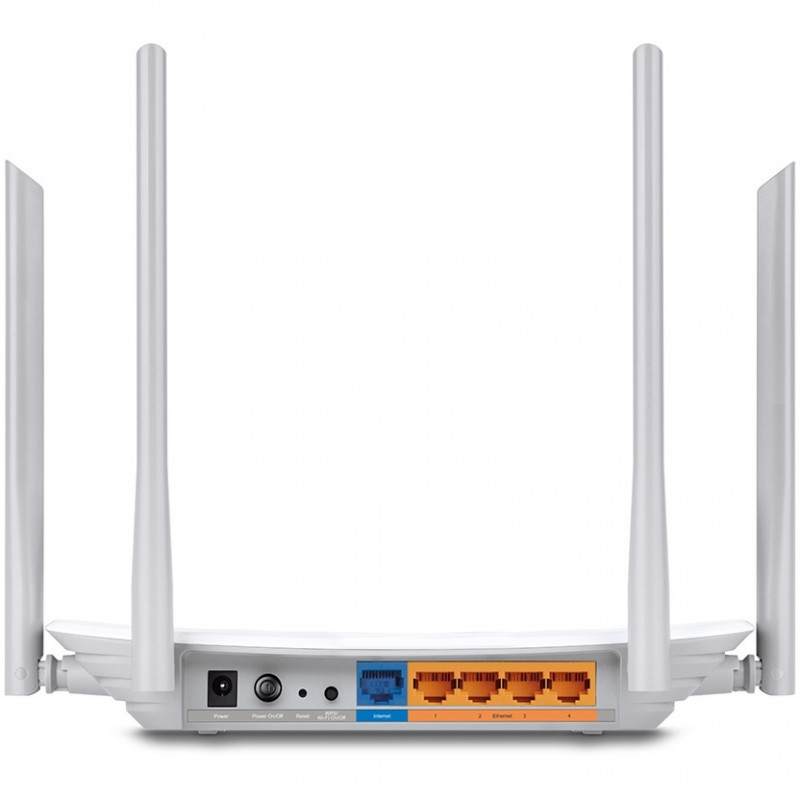 "TP-Link AC1200 Wireless Dual Band WiFi Router. WAN connection type: RJ-45. Wi-Fi band: Dual-band (2.4 GHz / 5 GHz), Top Wi-Fi standard: Wi-Fi 5 (802.11ac), WLAN data transfer rate (max): 867 Mbit/s. Ethernet LAN interface type: Fast Ethernet, Ethernet LAN data rates: 10,100 Mbit/s, Cabling technology: 10/100Base-T(X). Security algorithms: 64-bit WEP, 128-bit WEP, WPA, WPA-PSK, WPA2, WPA2-PSK. Supported network protocols: IPv4, IPv6"\n"High-Speed Dual Band Wi-Fi for Better Connections