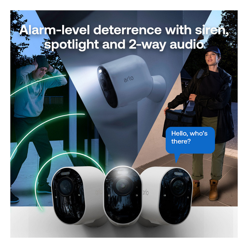 "Arlo Pro 6 2K+ Security Camera, 4-cam. Type: IP security camera, Placement supported: Outdoor, Connectivity technology: Wired & Wireless. Mounting type: Ceiling/wall, Product colour: Black, White, Housing material: Plastic. Field of view (FOV) angle: 160°, Lens viewing angle, horizontal: 130°, Lens viewing angle, vertical: 67°. Digital zoom: 12x, Detect distance: 7.5 m, Lens diameter: 1.5 cm. Night vision distance: 5 m, B/W night vision distance: 5 m, Colour night vision distance: 7.5 m"\n"The Arlo Pro 6 is built for those who demand more from their home security. With 2K+ HDR resolution and a 12-bit colour sensor, it captures over 60 billion more colours than the human eye - so faces, licence plates and the smallest details stay crystal clear, even in the dark. Arlo’s AI-powered Early Warning System takes detection further, recognising people, vehicles, animals, packages and even fire - with fewer false alerts and smarter, faster notifications. A 160° wide field of view, 12x zoom with auto-tracking, and built-in spotlight and siren mean threats are spotted, recorded and deterred before they get close. The Pro 6 is easy to install, works seamlessly with the Arlo ecosystem, and is designed to outsmart every rival.