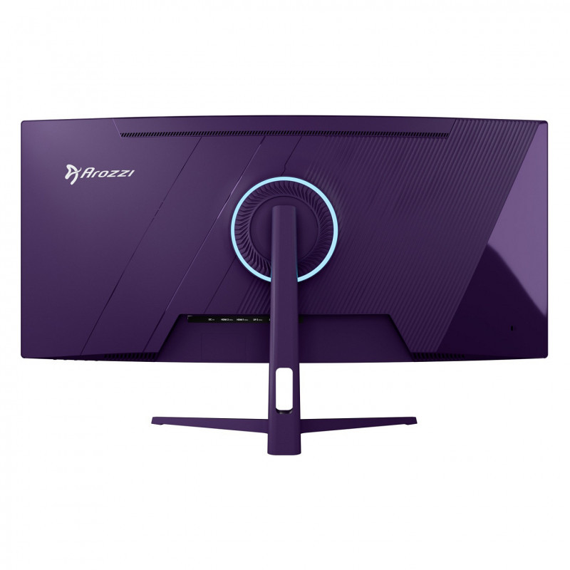 "Arozzi Nova 34″ Curved. Display diagonal: 86.4 cm (34""), Display resolution: 3440 x 1440 pixels, HD type: 4K Ultra HD, Display technology: LED, Response time: 1 ms, Native aspect ratio: 21:9, Viewing angle, horizontal: 178°, Viewing angle, vertical: 178°. Built-in speaker(s). VESA mounting. Product colour: Purple"\n"Introducing Arozzi’s 34-inch UWQHD gaming monitor, meticulously engineered to enhance your gaming and multimedia experiences for both PC and console.