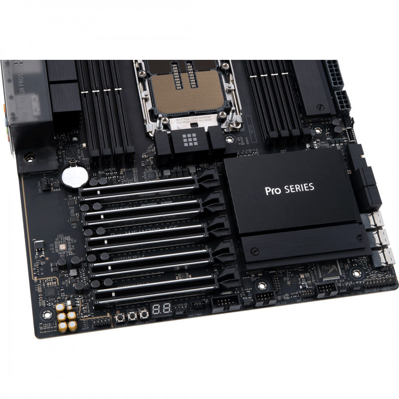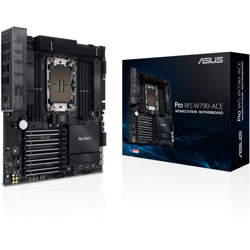 "ASUS PRO WS W790-ACE. Processor manufacturer: Intel, Processor socket: LGA 4677 (Socket E), Compatible processor series: Intel Xeon W. Supported memory types: DDR5-SDRAM, Maximum internal memory: 2.05 TB, Memory slots type: DIMM. Supported storage drive interfaces: M.2, SATA III, Supported storage drive types: HDD & SSD, RAID levels: 0, 1, 5, 10. Ethernet interface type: 2.5 Gigabit Ethernet, 10 Gigabit Ethernet, Fast Ethernet, Gigabit Ethernet. Component for: Workstation, Motherboard form factor: SSI CEB, Motherboard chipset family: Intel"\n
