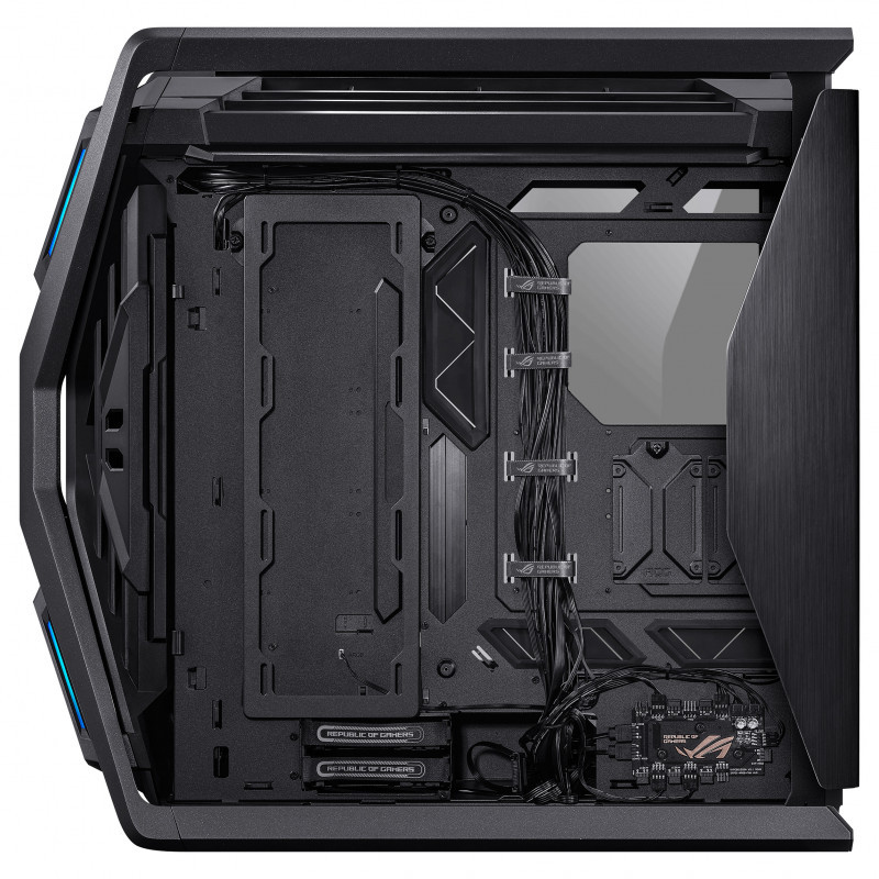The ROG Hyperion GR701 BTF Edition brings an X factor in both form and function that builders around the world have been craving. With support for dual 420 mm radiators, towering video cards, a fully integrated 2-way aluminum graphics card holder, 60-watt device charging and dual front USB-C connectors for compatible ROG motherboards, it is truly a PC chassis in the coveted ROG style.