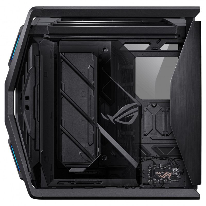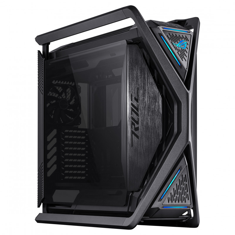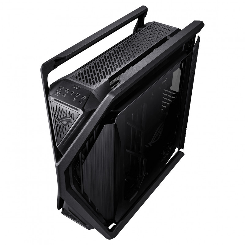 "ASUS ROG Hyperion GR701 BTF Edition. Form factor: Tower, Type: PC, Product colour: Black, Transparent. Front fans installed: 3x 140 mm, Front fans diameters supported: 120,140,240,280,360,420 mm, Rear fans installed: 1x 140 mm. Supported HDD sizes: 2.5,3.5"", SSD form factor: 2.5"". Width: 268 mm, Depth: 639 mm, Height: 659 mm. Package width: 350 mm, Package depth: 720 mm, Package height: 715 mm"\n"ROG Hyperion GR701 BTF Edition E-ATX computer case, motherboard hidden connectors design support, 420 mm dual radiator support, four 140 mm fans, metal GPU holder, component storage, ARGB fan hub, 60W fast charging.