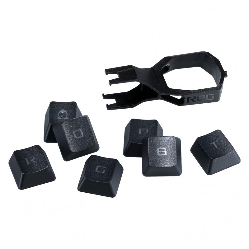 "ASUS ROG RX PBT Keycap Set. Product type: Keyboard cap, Device type: Keyboard, Brand compatibility: ASUS, Compatibility: ROG RX Switch. Weight: 250 g. Product colour: Black"\n"ROG PBT Doubleshot Keycap Set for ROG RX Switches