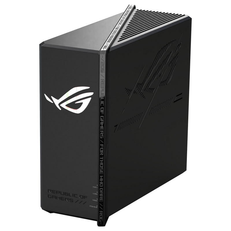 "ASUS ROG Strix GS-BE18000. WAN connection type: RJ-45. Wi-Fi band: Tri-band (2.4 GHz / 5 GHz / 6 GHz), Top Wi-Fi standard: Wi-Fi 7 (802.11be), WLAN data transfer rate (max): 11529 Mbit/s. Ethernet LAN interface type: 2.5 Gigabit Ethernet, Ethernet LAN data rates: 10,100,1000,2500 Mbit/s, Cabling technology: 10/100/1000Base-T(X). Security algorithms: OWE, SSH, SSID, WPA, WPA2, WPA3-Enterprise, WPA3-Personal, WPS, MAC address table: 64 entries. Product type: Tabletop router, Product colour: Black, LED indicators: LAN, Power, WAN, WLAN"\n"Slash Through The Game