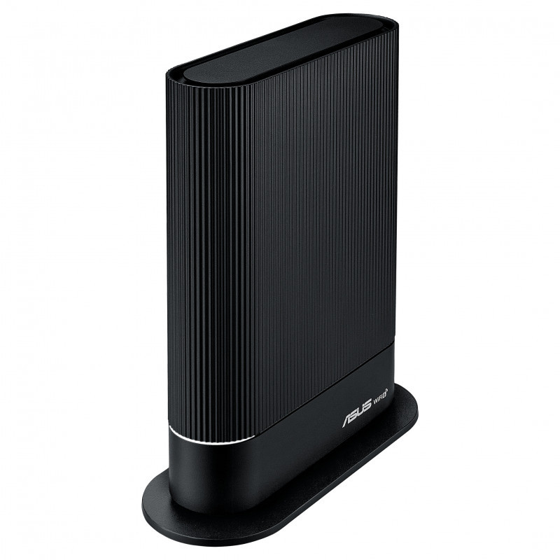 "ASUS RT-AX59U. WAN connection type: RJ-45. Wi-Fi band: Dual-band (2.4 GHz / 5 GHz), Top Wi-Fi standard: Wi-Fi 6E (802.11ax), WLAN data transfer rate (max): 3603 Mbit/s. Ethernet LAN interface type: Gigabit Ethernet, Ethernet LAN data rates: 10,100,1000 Mbit/s, Cabling technology: 10/100/1000Base-T(X). Security algorithms: SSH, TLS, WPA-Enterprise, WPA2-Enterprise, WPS, NAT functionality: PPTP Pass-Through, L2TP Pass-Through, IPSec Pass-Through, RTSP Pass-Through, H.323 Pass-Through,.... Product type: Tabletop router, Product colour: Black, LED indicators: Power, Status"\n"AX4200 Dual Band WiFi 6 (802.11ax) AiMesh Router supporting free network security with AiProtection Pro, Safe Browsing, Instant Guard and VPN features, Parental controls, Easy setup, Wall mount