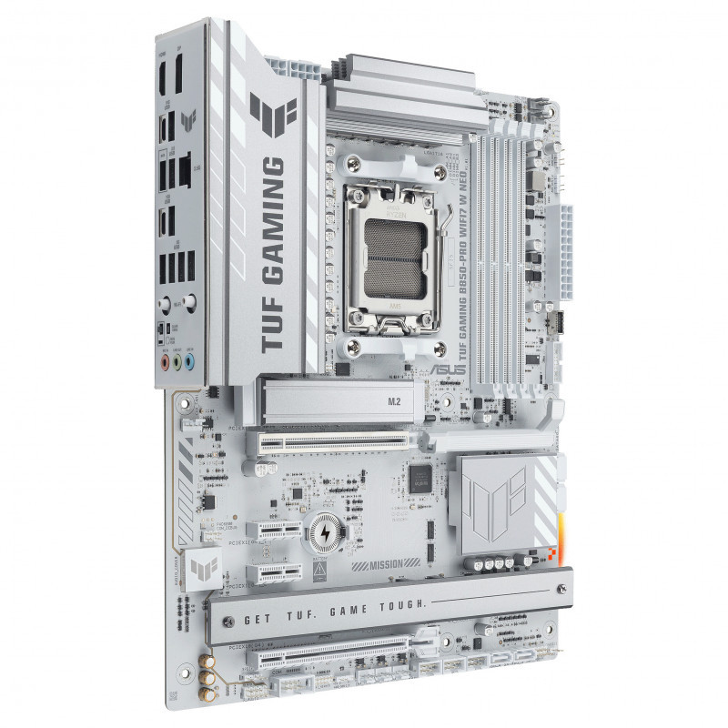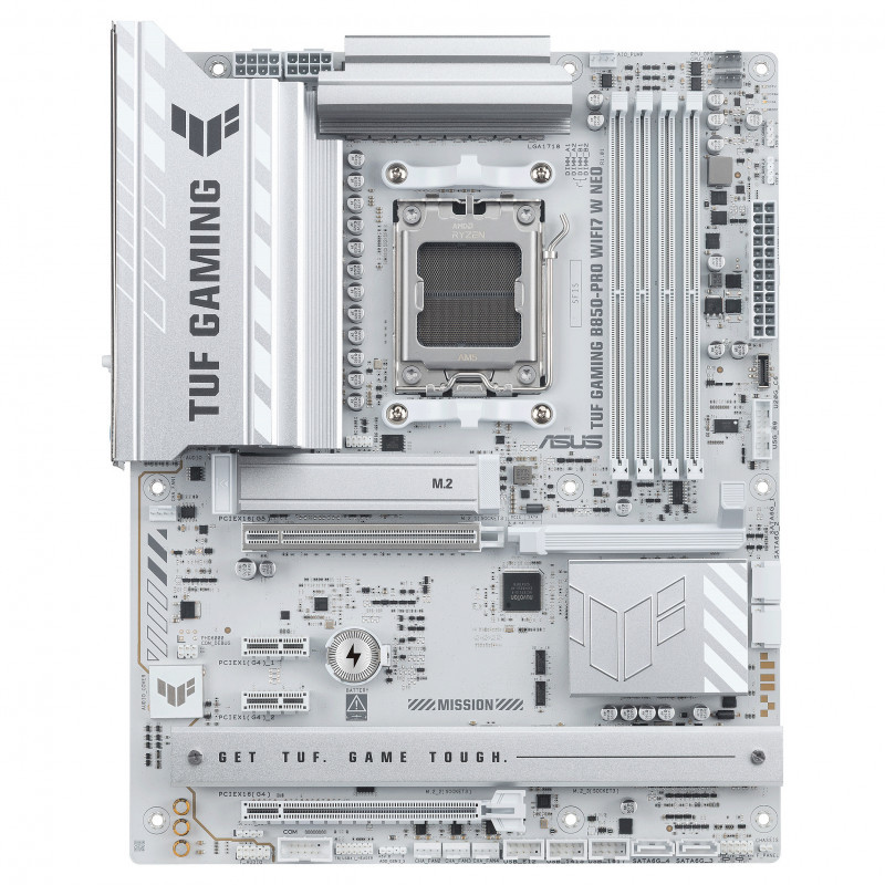 ASUS TUF GAMING B850-PRO WIFI7 W NEO takes all the essential elements of the latest AMD Ryzen™ processors and combines them with game-ready features and proven durability. Engineered with an upgraded power solution and a comprehensive cooling system, this motherboard goes beyond expectations with rock-solid and stable performance for marathon gaming. TUF GAMING motherboards also undergo rigorous endurance testing to ensure that they can handle conditions where others may fail. This platform delivers the power and connectivity that advanced AI PC applications demand."