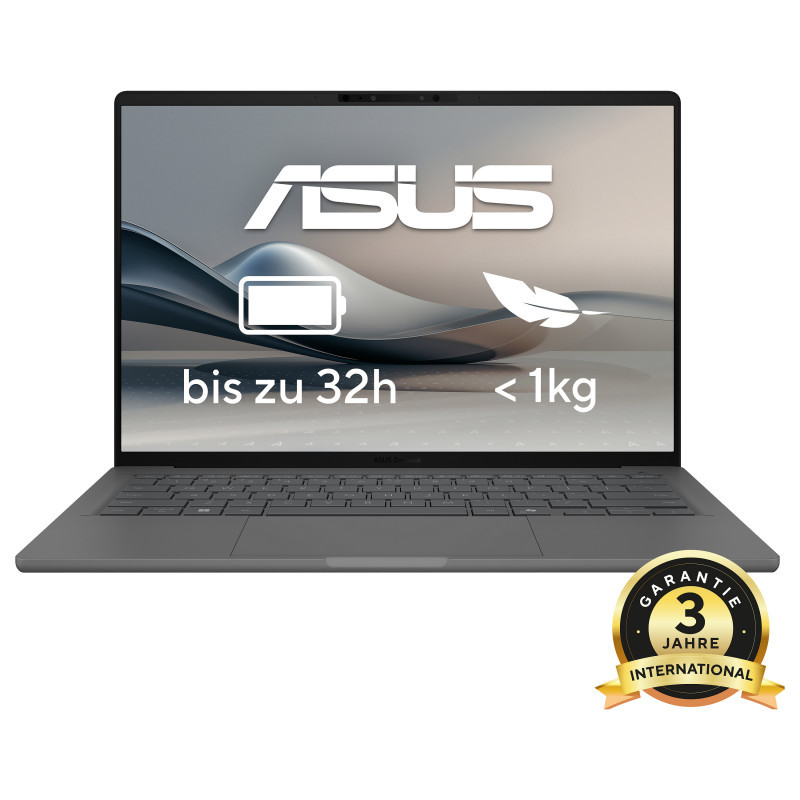"ASUS Zenbook A14 UX3407RA-QD010W. Product type: Laptop, Form factor: Clamshell. Processor family: Qualcomm Snapdragon, Processor model: X1E-78-100. Display diagonal: 35.6 cm (14""), HD type: WUXGA, Display resolution: 1920 x 1200 pixels. Internal memory: 32 GB, Internal memory type: LPDDR5x-SDRAM. Total storage capacity: 1 TB, Storage media: SSD. On-board graphics card model: Qualcomm Adreno GPU. Operating system installed: Windows 11 Home. Product colour: Grey. Weight: 980 g"\n"ASUS Zenbook A14