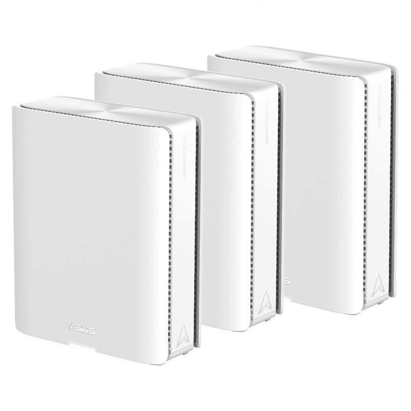 "ASUS BQ16. Product colour: White, Antenna type: Internal, LED indicators: Power. Wi-Fi band: Tri-band (2.4 GHz / 5 GHz / 6 GHz), Top Wi-Fi standard: Wi-Fi 7 (802.11be), WLAN data transfer rate (max): 11529 Mbit/s. Internal memory: 2048 MB, Flash memory: 256 MB, Parental control features: Content filter, Time controls, Time rewards. AC input voltage: 110 - 240 V, AC input frequency: 50 - 60 Hz, AC adapter output voltage: 19 V. Width: 174.2 mm, Depth: 72 mm, Height: 214 mm"\n"BQ16 Quad Band WiFi 7 (802.11be) BE25000 Mesh WiFi System, support new 320MHz bandwidth & 4096-QAM, Multi-link operation (MLO),dual 10G ports, backup WAN, subscription free network security and AiMesh support