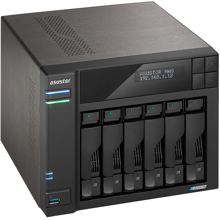 "Asustor LOCKERSTOR 6. Type: NAS. Chassis type: Desktop. Device class: Home & Home Office. Processor family: Intel® Celeron®, Processor model: N5105, Processor frequency: 2 GHz. Internal memory: 8 GB, Internal memory type: DDR4. Installed storage drive type: HDD. Operating system installed: ADM"\n"Enthusiast-grade NAS with two, four or six bays