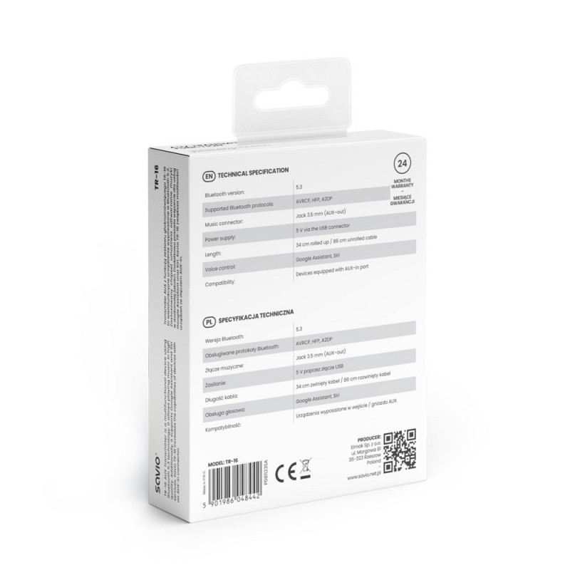 Savio TR-16 siųstuvo AUX adapteris su laisvų rankų funkcija, Bluetooth 5.3, Google Assistant / Siri