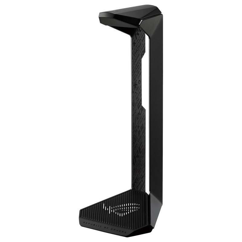 "ASUS ROG Throne II Core. Product type: Headset stand. Weight: 620 g. Product colour: Black"\n"The ROG Throne II Core Gaming Headset Stand for ROG gaming headsets, featuring signature ROG text patterns, silver-foil ROG logo, solid aluminum-alloy frame, and anti-slip base for premium aesthetics and stability