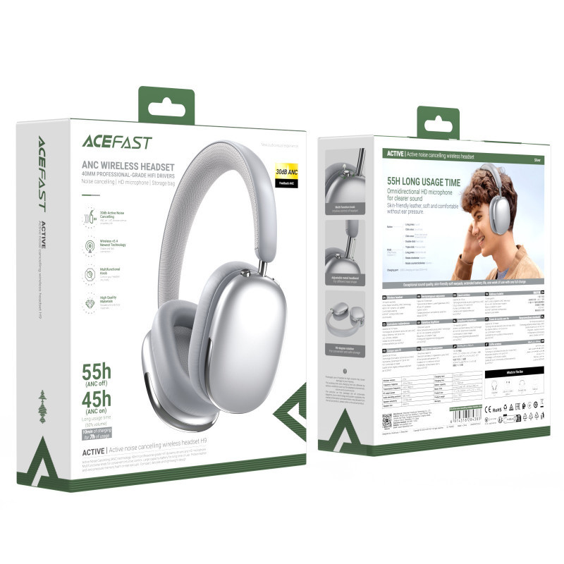 Belaidės ausinės Acefast H9 ANC sidabrinės