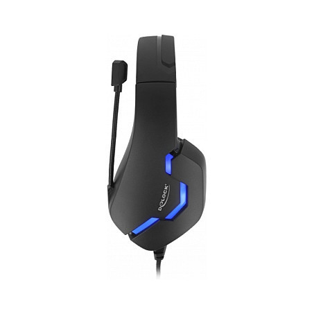 "DeLOCK Gaming Headset Over-Ear with 3.5 mm Stereo jack and blue LED light for PC, Laptop and Game Consoles. Product type: Headset. Connectivity technology: Wired. Recommended usage: Gaming. Headphone frequency: 20 - 20000 Hz. Cable length: 2.1 m. Weight: 230 g. Product colour: Black, Blue"\n"This gaming stereo headset by Delock has been developed for the playback and recording of audio signals, especially in the area of gaming. It is also suitable for skyping, video conferences or online courses.