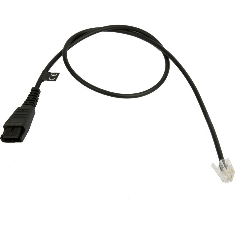 "Jabra LINK STRAIGHT MOD. Cable length: 0.5 m, Connector 1: QD, Connector 2: RJ45. Package width: 50 mm, Package depth: 50 mm, Package height: 100 mm"\n"Cord to connect a Jabra Quick Disconnect headset to phones with a modular (RJ) interface. Please check the compatibility guide for which cord works with your specific phone."