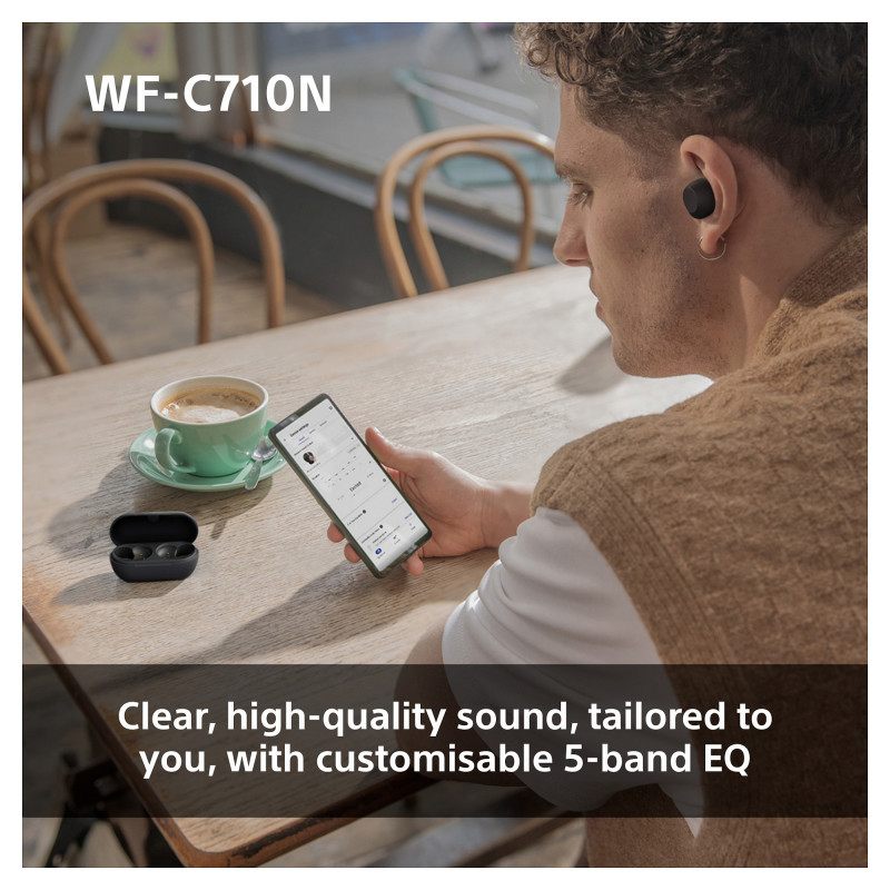 With clear vocals, powerful bass, and a rich balanced sound, you can enjoy a wide range of music on the WF-C710N. The earbuds feature our Digital Sound Enhancement Engine (DSEE) to upscale your digital music closer to the original recording. And with the custom EQ in the Sony | Sound Connect app, you can tailor the sound to your own taste by enhancing or reducing certain elements of the audio, such as increasing the bass for a richer, deeper sound or boosting the treble for more clarity and detail. Alternatively, choose from one of the presets to find the best sound for you.