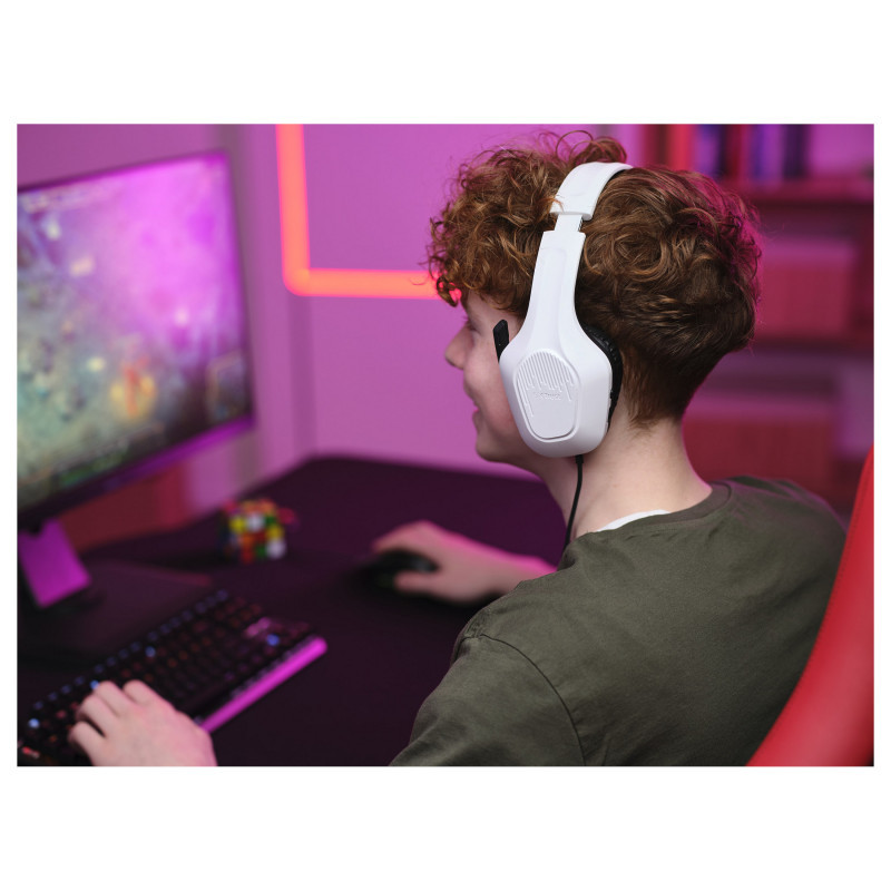 "Trust GXT 415W Zirox. Product type: Headset. Connectivity technology: Wired. Recommended usage: Gaming. Headphone frequency: 20 - 20000 Hz. Cable length: 2 m. Weight: 253 g. Product colour: White"\n"Lightweight over-ear gaming headset made for PC, laptop and consoles.