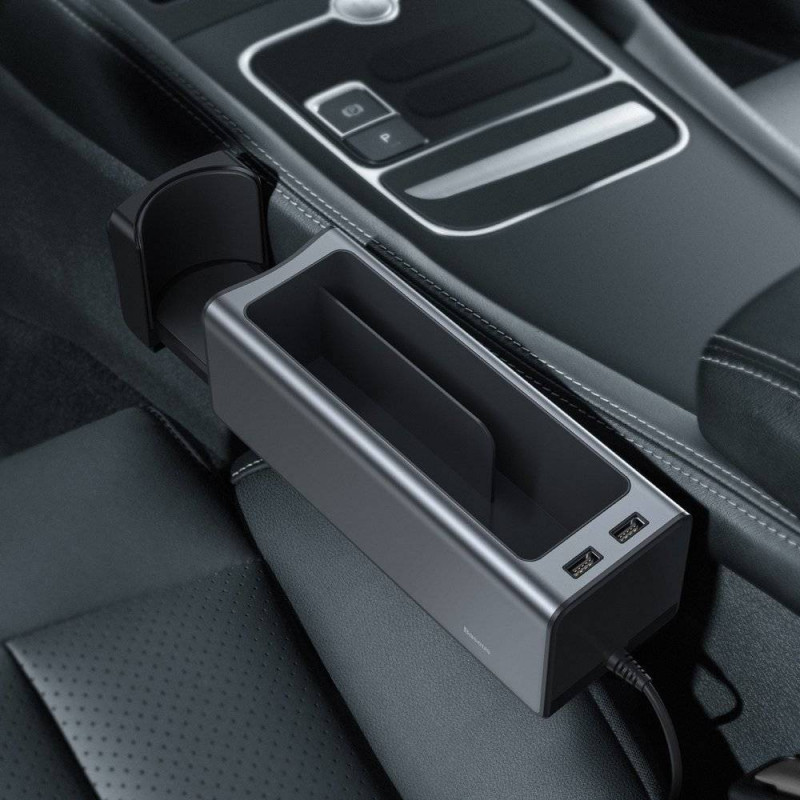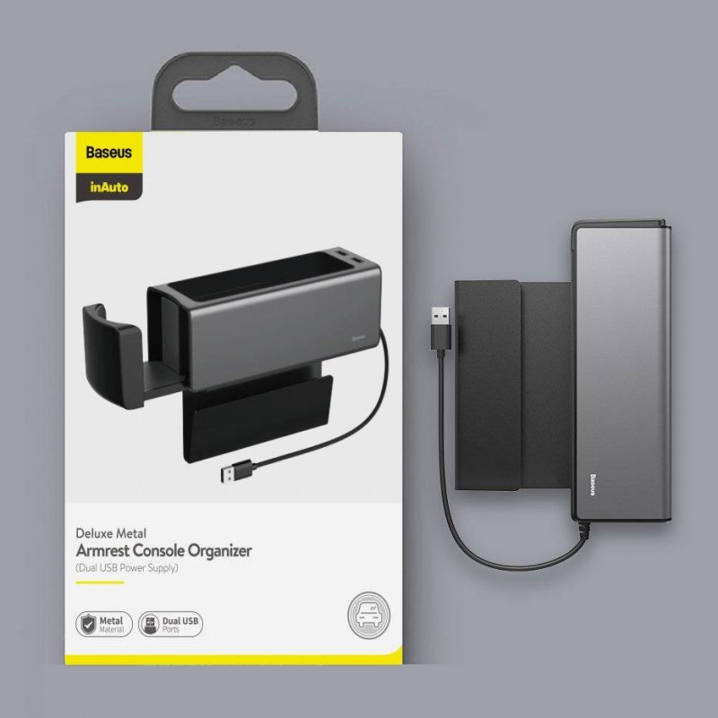 Baseus Deluxe Metal Armrest Console Organizer CRCWH-A01 – tai aukštos kokybės metalinis automobilio porankio konsolės organizatorius, skirtas tvarkyti ir optimizuoti vidinę erdvę. Šis kompaktiškas prietaisas ne tik padeda išlaikyti tvarką, bet ir suteikia papildomų funkcijų, tokių kaip USB įkrovimas ir puodelio laikiklis.