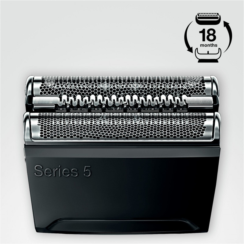 "Braun Series 5 52S Electric Shaver Head Replacement Cassette – Silver. Product type: Shaving head, Number of shaver heads: 1 head(s), Product colour: Silver. Country of origin: Germany. Weight: 16 g. Package width: 27 mm, Package depth: 80 mm, Package height: 160 mm. Quantity per pack: 1 pc(s), Master (outer) case width: 364 mm, Master (outer) case length: 548 mm"\n