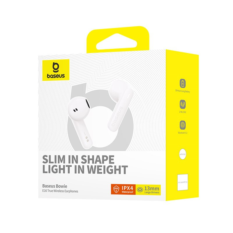 Baseus Bowie E16 Laisvų rankų įranga True Wireless Earphones Įkišamos į ausį Skambučiai / muzika C tipo USB Bluetooth Balta