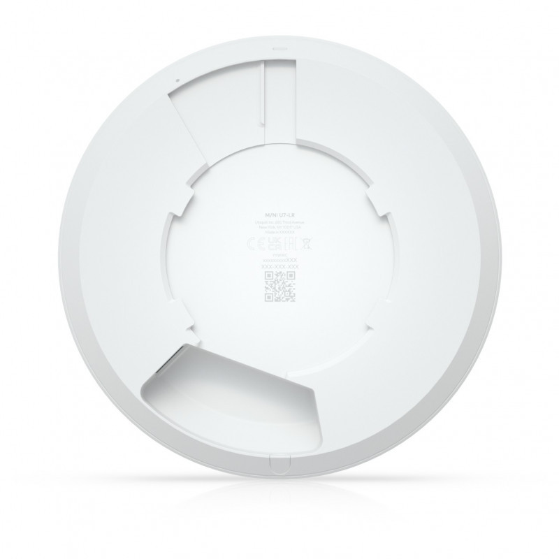 "Ubiquiti U7 Long-Range. 2.4 GHz, 5 GHz, Maximum data transfer rate: 7300 Mbit/s. Security algorithms: PPSK, TLS. Ethernet LAN data rates: 1000,2500 Mbit/s. Power over Ethernet (PoE). Product colour: White. Power consumption (max): 14 W"\n"Compact, ceiling-mount WiFi 7 AP with 5 spatial streams and extended signal range."