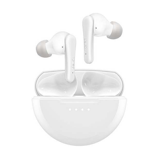 "Belkin SoundForm Rhythm. Product type: Headset. Connectivity technology: Wired & Wireless, Bluetooth. Recommended usage: Calls/Music. Wireless range: 10 m. Cable length: 0.03 m, Product colour: White"\n"Take a step up with Active Noise Cancellation. Latest version of our popular earbuds offers new features including noise cancellation. Clear Call Quality reduces background noise and Multipoint 2-device connection allows for seamless transfer between audio sources. Enjoy 8 hours of nonstop playtime, plus another 20 hours of playtime with the charging case. "