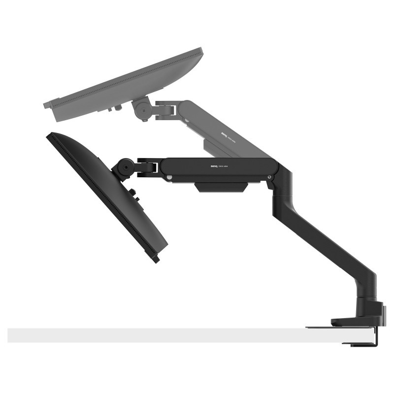 "BenQ Ergo Arm BDH01. Mounting: Clamp/Grommet, Maximum weight capacity: 40 kg, Minimum screen size: 43.2 cm (17""), Maximum screen size: 88.9 cm (35""), Minimum VESA mount: 75 x 75 mm, Maximum VESA mount: 100 x 100 mm. Swivel angle range: -90 - 90°, Tilt angle range: -20 - 50°. Product colour: Black"\n"Handles Any Monitor, Any Weight