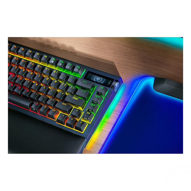 Unleash full immersion with the Razer BlackWidow V4 Pro 75%, featuring true 4K Hz wireless—powered by Razer HyperSpeed and HyperPolling. With a hot-swappable design fully equipped with Bluetooth, the Razer Command Dial, and an OLED display to monitor PC metrics, show custom GIFs and more, creating your dream keyboard now has no limits.