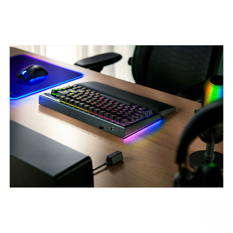 "Razer BlackWidow V4 Pro. Keyboard form factor: 75%. Keyboard style: Straight. Connectivity technology: Wired & Wireless, Device interface: USB + RF Wireless + Bluetooth, Keyboard key switch: Mechanical, Keyboard layout: QWERTY. Backlight type: RGB LED, Wrist rest. Recommended usage: Gaming. Product colour: Black"\n"RAZER BLACKWIDOW V4 PRO 75%