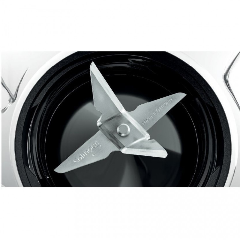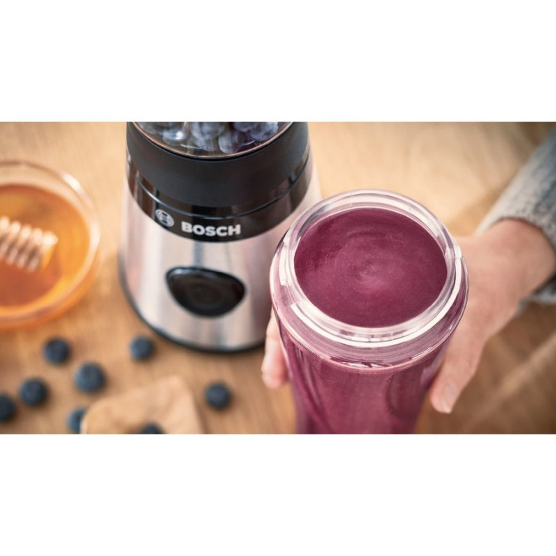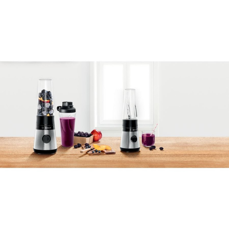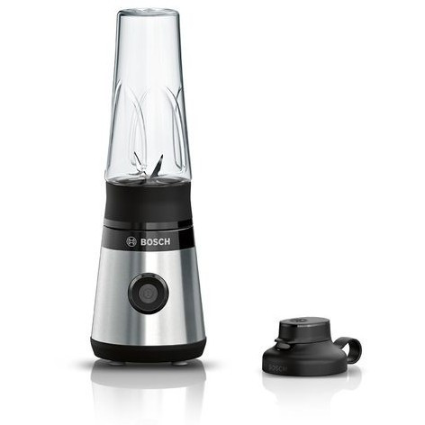 "Bosch VitaPower MMB2111M. Type: Tabletop blender, Product colour: Stainless steel. Bowl capacity: 0.6 L, Rotational speed (max): 30000 RPM. Blending bowl material: Tritan, Housing material: Plastic, Stainless steel, Blade material: Stainless steel. Power: 450 W, Power source: AC. Width: 367 mm, Depth: 122 mm, Height: 126 mm"\n