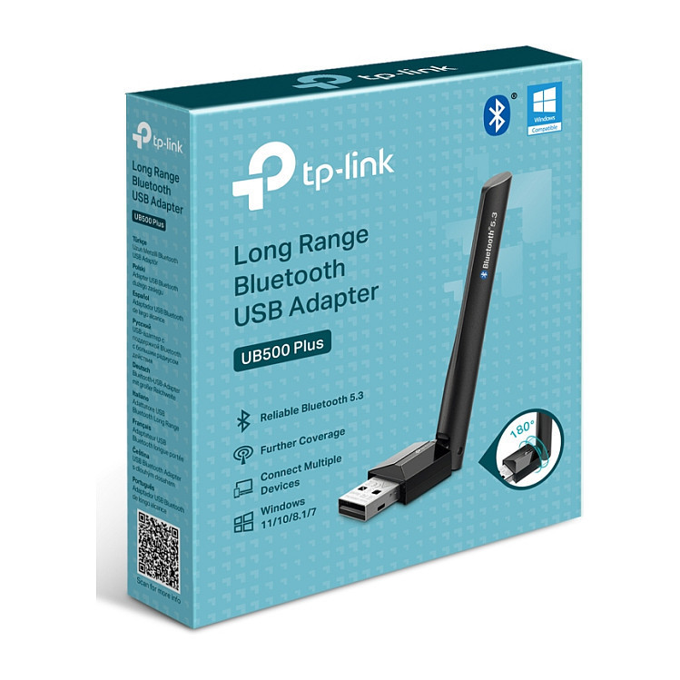"TP-Link UB500 Plus. Host interface: USB Type-A, Output interface: Bluetooth, Host interface gender: Male. Product colour: Black, Purpose: PC / Notebook / Tablet. Windows operating systems supported: Windows 10, Windows 11, Windows 7, Windows 8.1. Width: 16.8 mm, Depth: 42 mm, Height: 81 mm. Quantity per pack: 1 pc(s), Package type: Box"\n"Bluetooth 5.3: Faster Speeds, More Robust