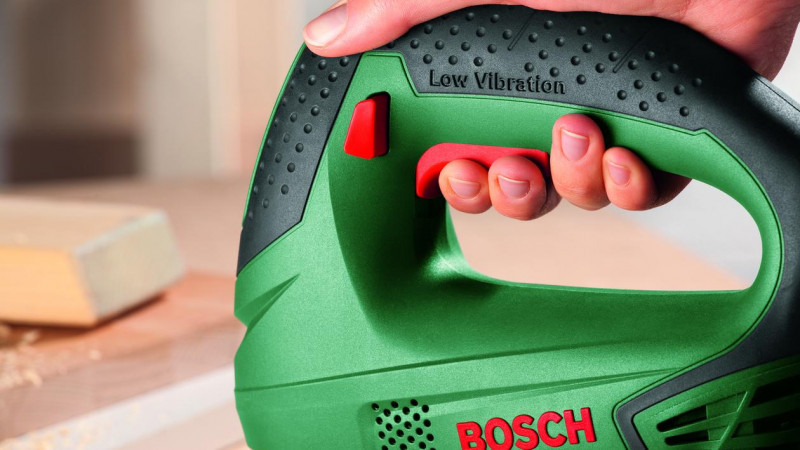 As easy as can be: compact size, low weight and outstanding handling ensure perfect control and optimum user comfort;Minimal vibration and safe, comfortable work due to Bosch “Low Vibration” with linear mass balance and ergonomic softgrip;Powerful 500 W motor and 65 mm cutting depth in wood – making even hard jobs easy;Switchable dust blowing function ensures a clear view of the cutting line at all times;Bosch SDS ensures effortless and safe saw blade changes within seconds – without the need for additional tools;Improved and enlarged metal base plate for safe and secure handling – adjustment of the base plate for mitre cuts up to 45°;Dust extraction port – for dust-free working;New cable guide with hanging hook for practical storage |