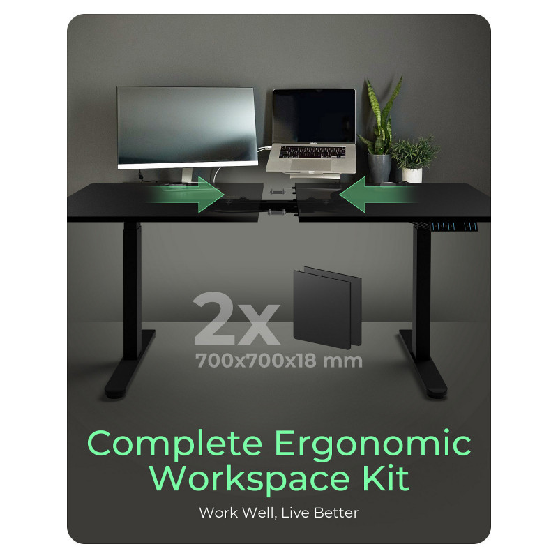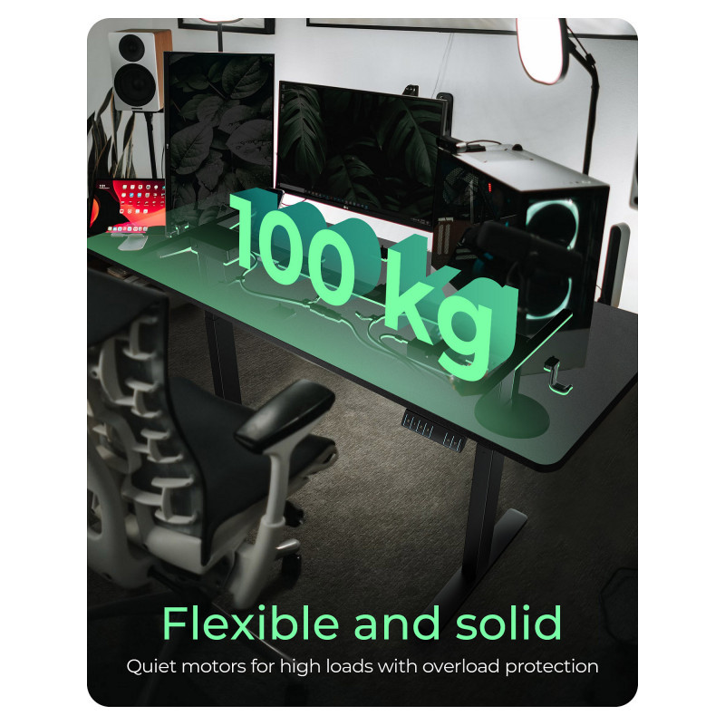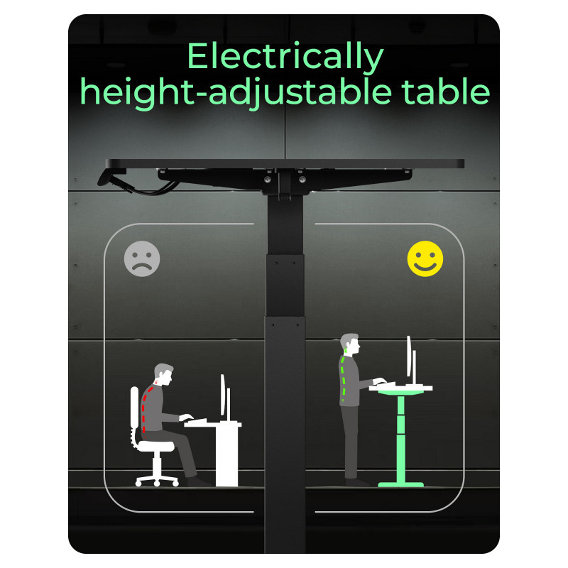 "ICY BOX IB-EW122B-TT. Product colour: Black, Maximum weight capacity: 100 kg, Height adjustment range: 630 - 1280 mm. Width: 1400 mm, Depth: 700 mm, Height: 750 mm. Package weight: 35.9 kg. Products per master (outer) case: 1 pc(s). AC input voltage: 100 - 240 V, AC input frequency: 50/60 Hz"\n"Ergonomic desk frame