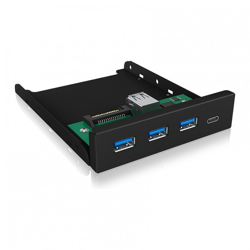 Take a deep breath. Put the headset down. Push the chair backwards. Take the USB hard drive in your hand. Duck under the desk. Searching for a free USB port in the darkness and greet the desktop with your head on the way back. The daily work with PCs with too few USB ports is now a little more comfortable again. The IB-HUB1418-i3 brings all currently required USB ports to the front of your PC.