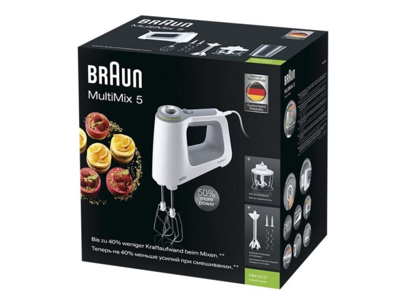 Braun MultiMix 5 HM 5137 Rankinis plaktuvas 750 W Pilka, Balta