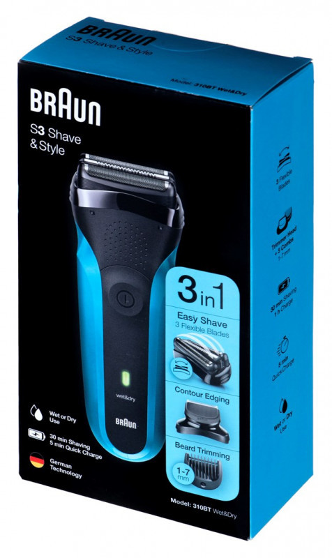 Braun Series 3 310BT Skustuvas Apkarpymo mašinėlė Juoda, Mėlyna