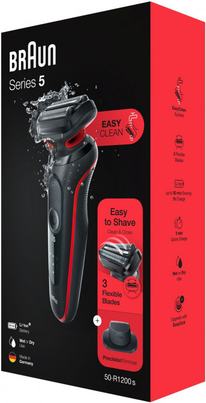 Braun | Shaver | 51-R1200s | Operating time (max) 50 min | Wet & Dry | Black/Red