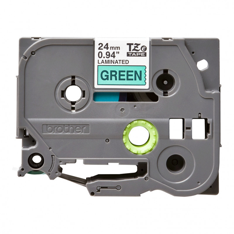 "Brother Laminated tape 24mm. Label colour: Black on green, Tape type: TZe, Product colour: Grey. Tape width: 2.4 cm, Tape length: 8 m, Width: 28 mm. Pallet gross height: 17.4 cm, Master (outer) cases per pallet: 30 pc(s), Layers per pallet: 6 pc(s)"\n"Compatible with a wide range of Brother’s P-touch printers, this genuine laminated TZe-751 labelling tape cassette is especially versatile thanks to its easy-to-read black and Green colour – so it comes in useful around the home, office and in other workplaces."