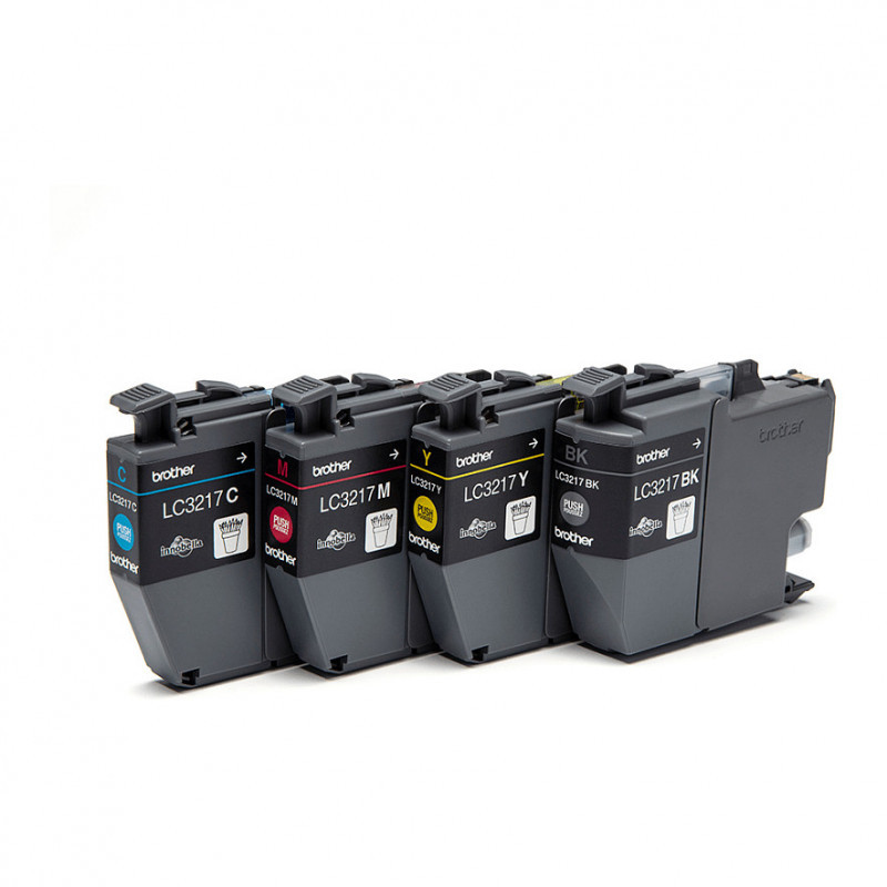 "Brother LC3217VALDR. Supply type: Multi pack, Colour ink page yield: 550 pages, Printing colours: Black, Cyan, Magenta, Yellow, Quantity per pack: 4 pc(s), Black ink page yield: 550 pages"\n"Looking for a cartridge that offers effortless performance every time you print? The Brother LC3217VAL value pack (including black, cyan, yellow and magenta ink cartridges) guarantees smooth, reliable and top quality printouts from your first to your last print. Great value for money, our perfectly balanced inks ensure your printer stays working at its best."