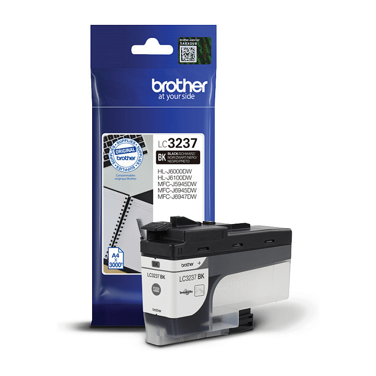 "Brother LC3237BK. Cartridge capacity: Standard Yield, Black ink type: Pigment-based ink, Supply type: Single pack, Colour ink page yield: 3000 pages, Printing colours: Black, Quantity per pack: 1 pc(s), Black ink page yield: 1500 pages"\n"This LC3237BK black ink cartridge has been expertly designed to work seamlessly with a wide range of Brother printers, to provide you with high-quality results, time after time.