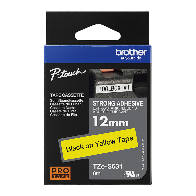 "Brother TZE-S631. Tape type: TZ, Country of origin: Philippines, Spare part retention: 5 year(s). Tape width: 1.2 cm, Tape length: 8 m, Width: 19 mm. Pallet gross height: 16.2 cm, Master (outer) cases per pallet: 36 pc(s), Layers per pallet: 6 pc(s). Tape size: 1.2 cm"\n"Brother P-touch Pro Tapes are built with tough and durable professional grade materials and adhesives. Developed to meet the needs of tradespeople and other professionals looking for reliable long-term identification that withstands the test of time. The TZe-S631 is perfect for smooth, rough, textured and powder coated surfaces. With 3 times more strength on textured surfaces, than Brother standard tape on average. These self-adhesive laminated labels can withstand extremes of temperatures and are resistant to chemicals, abrasion, sunlight and water. Meaning when you label something on-site, it stays labelled. Pro Tape TZe tape cassettes are quick and easy to install and come in various label widths, colours and materials. So, no matter what the job, Pro Tapes can provide you with crisp, sharp and easily readable labels to get the job done."