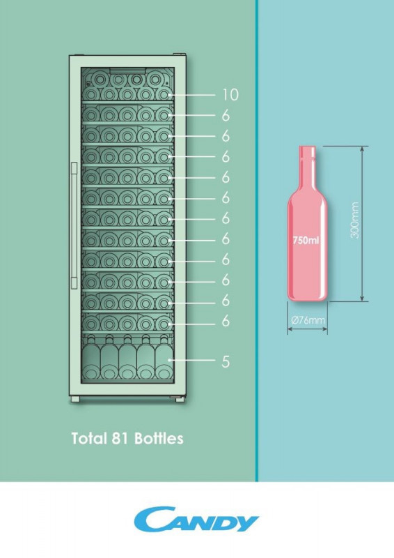 Candy DiVino CWC 200 EELW/NF Pastatomi Juoda 81 buteliai