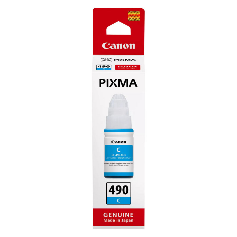 "Canon GI-490C. Printing colours: Cyan, Brand compatibility: Canon, Capacity: 70 ml. Quantity per pack: 1 pc(s)"\n