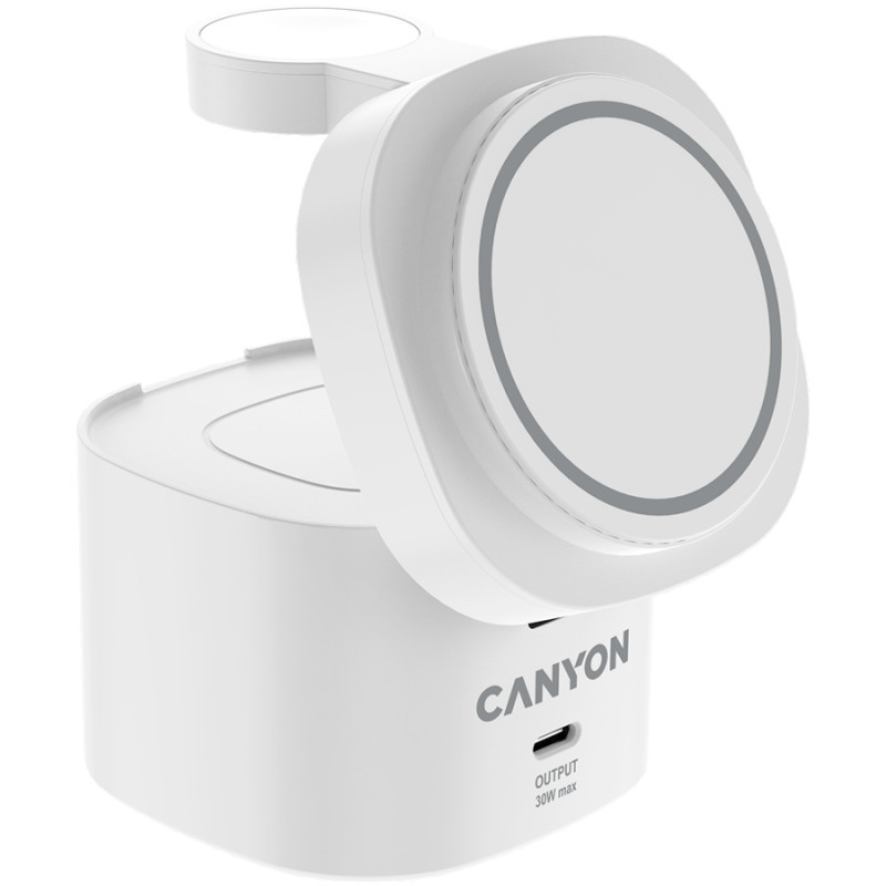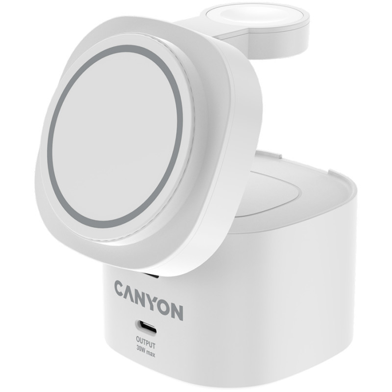Canyon 4 in 1 Wireless Charging Stand, 30W max, Size: 70x70x70.3mm, weight: 414g, with 65W charger and 1M cable, white