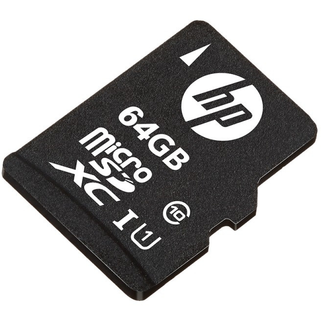 "HP SDU64GBXC10HP-EF. Capacity: 64 GB, Flash card type: MicroSDXC, Flash memory class: Class 10, Internal memory type: UHS-I, UHS Speed Class: Class 1 (U1). Product colour: Black"\n"HP high speed UHS-I U1 flash memory cards are ready to store your latest digital content for your smartphone, tablet and other mobile devices."
