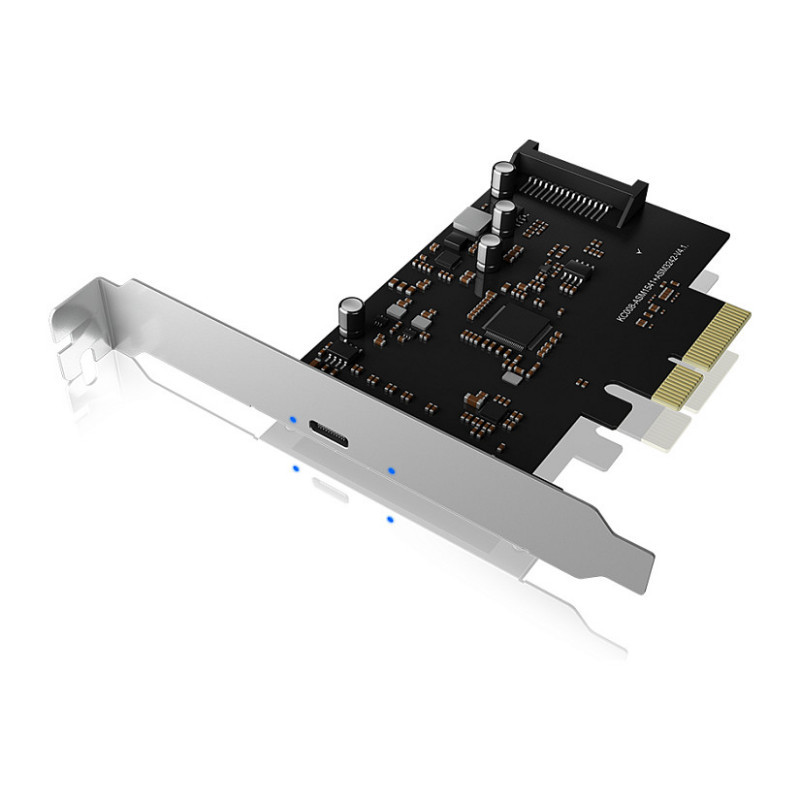 "ICY BOX IB-PCI1901-C32. Host interface: PCIe, Output interface: USB 3.2 Gen 2 (3.1 Gen 2), Host interface gender: Male. Product colour: Black, LED indicators: Access, Power, Country of origin: China. Data transfer rate (max): 20 Gbit/s. Width: 19 mm, Depth: 105 mm, Height: 65 mm. Package width: 25 mm, Package depth: 125 mm, Package height: 130 mm"\n"USB 3.2 (Gen 2x2)