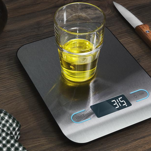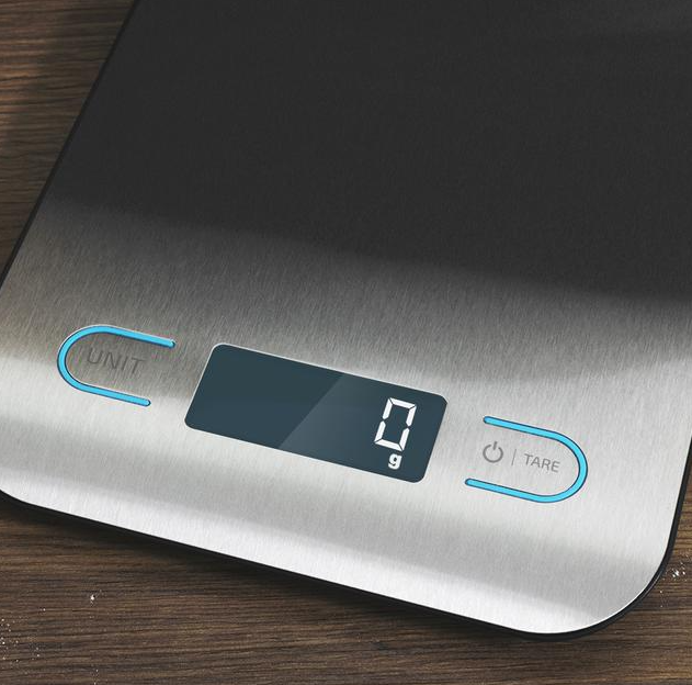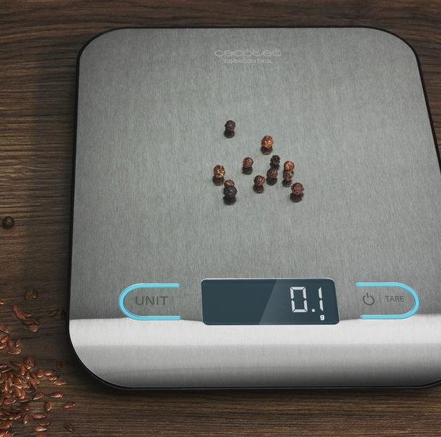 Stainless steel platform with anti-fingerprint coating, which makes cleaning easier and increases durability; Digital kitchen scale with FourControl technology that includes 4 high-precision sensors |