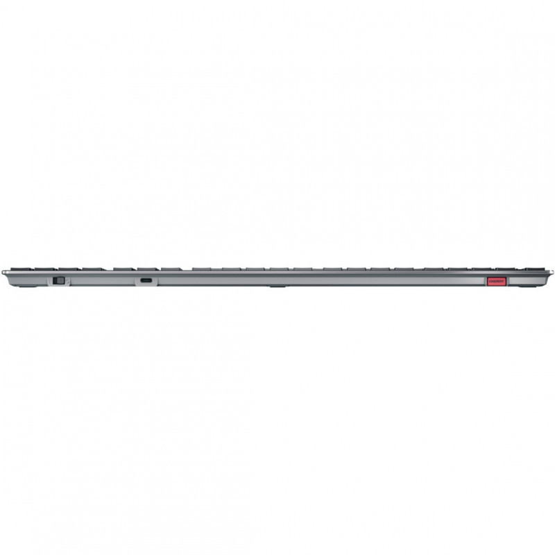 "CHERRY KW X ULP. Keyboard style: Straight. Connectivity technology: Wired & Wireless, Device interface: USB + RF Wireless + Bluetooth, Keyboard key switch: Mechanical, Keyboard layout: QWERTY, Keyboard number of keys: 110. Backlight type: LED. Cable length: 1.5 m. Recommended usage: Universal. Product colour: Black"\n"Ultra-slim high-end keyboard with mechanical switches